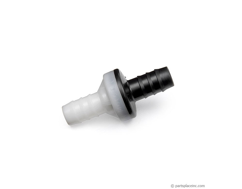 VW brake check valve. This original equipment, direct fit check valve sits on a vacuum line leading to the brake booster servo. It allows vacuum pressure in the brake booster servo, and doesn’t let any out. If your brake pedal feels stiffer than normal, you will want to start investigating the check valve, and vacuum lines leading to the power brake booster.