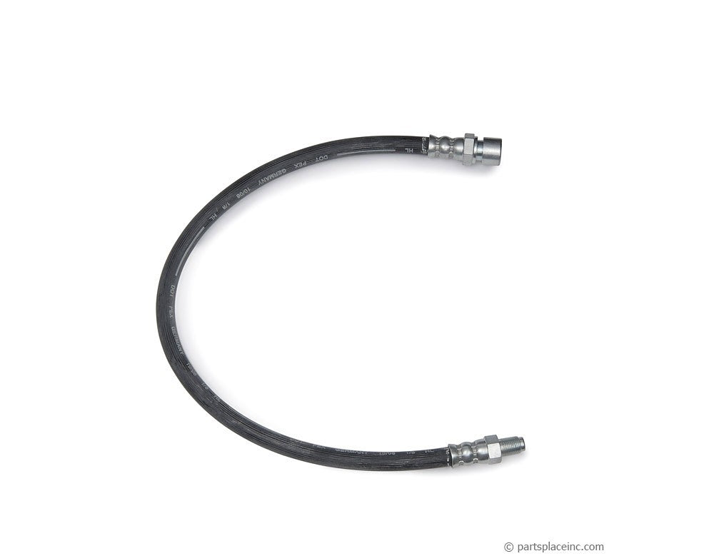 VW Beetle front brake hose. Replace swollen or cracked brake hoses to retain like new pedal feel, and prevent a catastrophe when your brakes fail you. 480mm (18.9") long. Sold each.