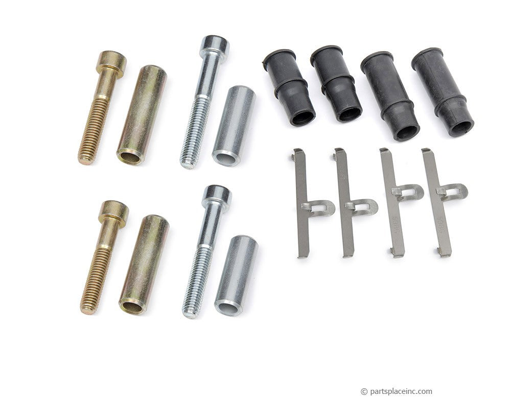 VW Brake Caliper Pin Kit. These pins hold the calipers in place while allowing enough movement so that the brake pads squeeze equally on each side of the rotor. If yours are rusted, bent, or damaged, they can cause uneven pad wear, noise, and even change how well your brakes stop the car. This kit includes the pins, boots, sleeves, and lubrication to repair two calipers.