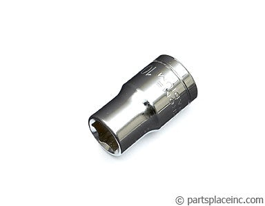 3/8" Drive x 10mm, Shallow Socket that is designed with drop forged chrome vanadium steel and heated treated and triple chrome plated for extra durability. It has a tapered 6-point socket end for easy access to nuts and bolts. It grips flat sides of fastener heads, not corners, preventing round-off.