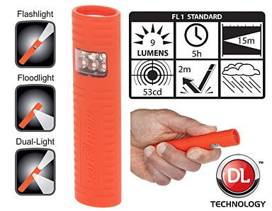 This Multi-purpose Flashlight switches between flashlight, floodlight or dual-light operation. The compact (4.4") water resistant design makes them convenient to use and carry. Includes 2 AAA batteries.