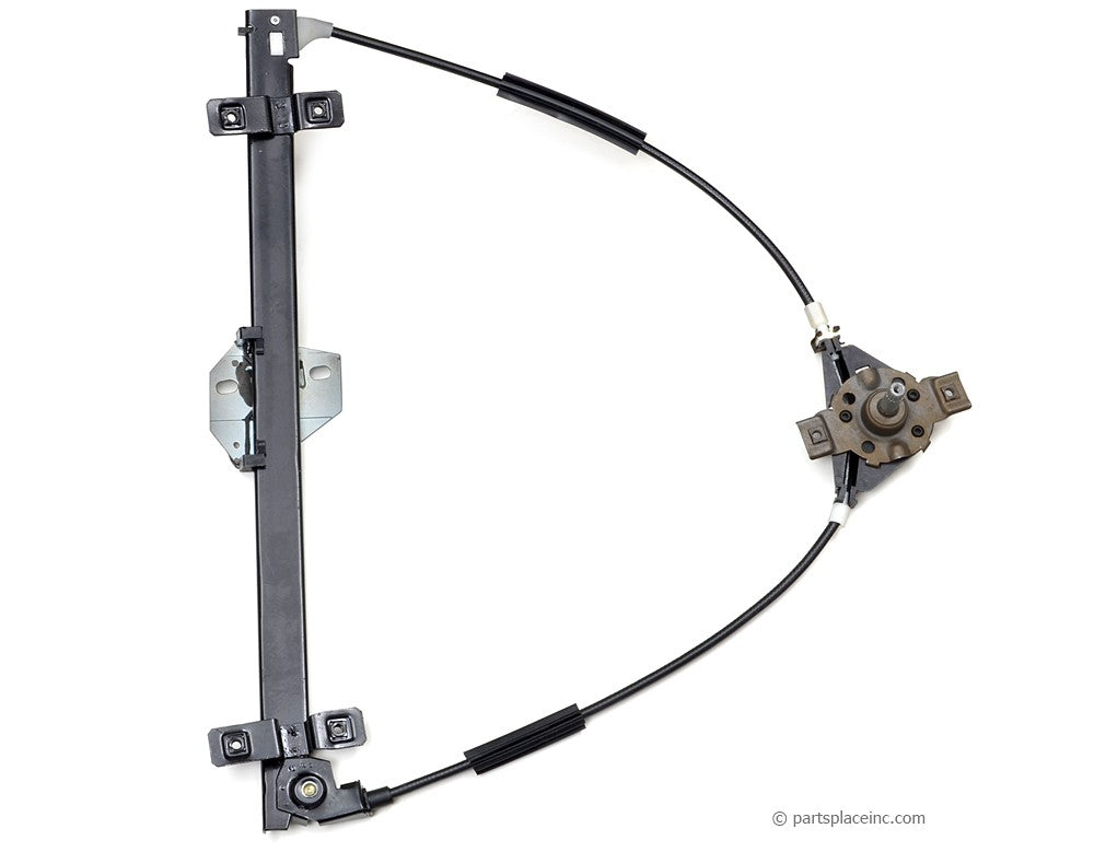VW manual window regulator. The window regulator is a gear driven cable mechanism that actually raises and lowers the window. They wear out over time, if your window is difficult or impossible to raise or lower, you need a new regulator. Fits on the passenger side front only.