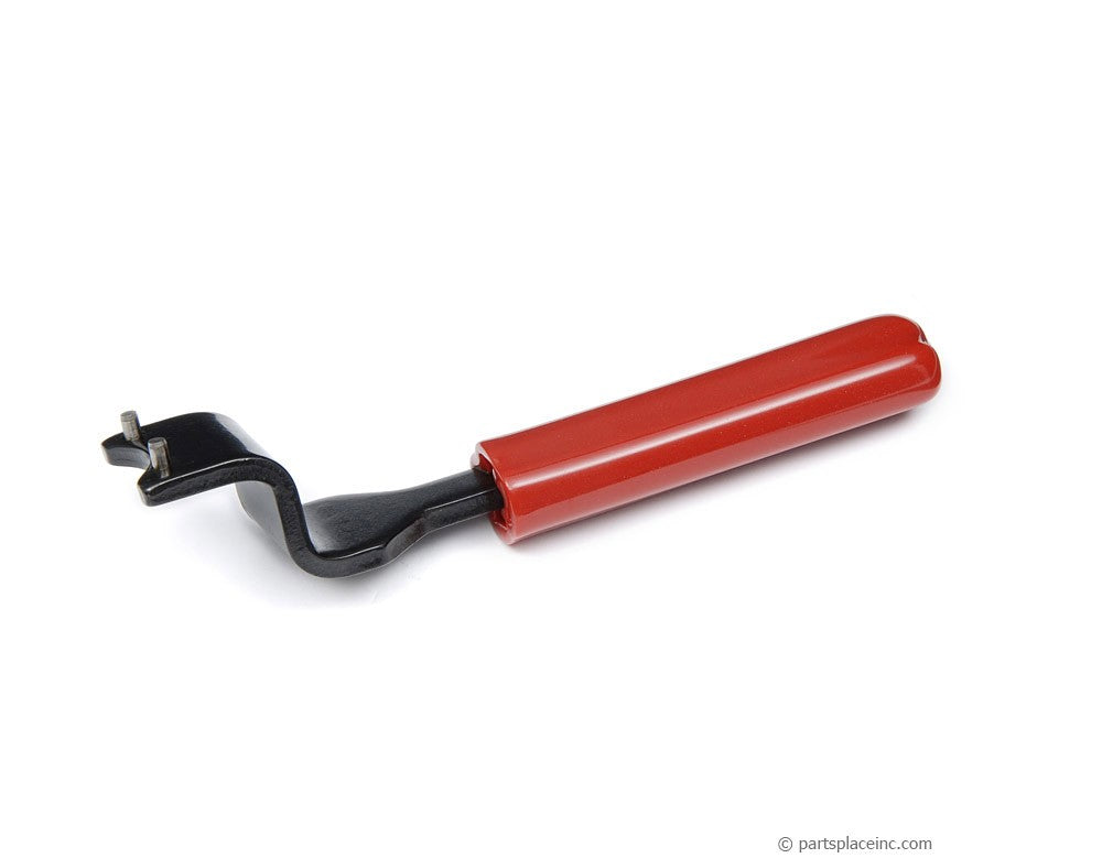VW timing belt tensioner tool. A must have tool to correctly tension the timing belt on all diesels which have two holes on the face of the tensioner pulley. This belt tensioner wrench has two pins that lock into the pulley adjuster allowing proper adjustment.